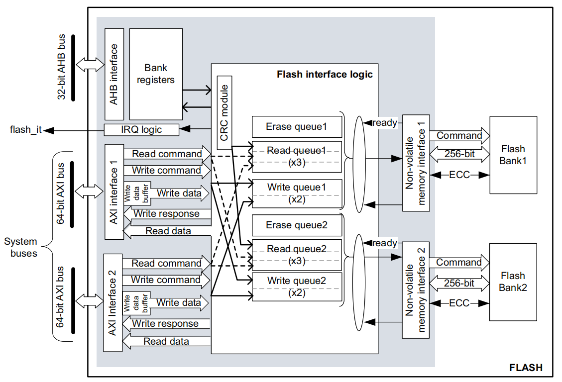 - 每个 256bit Flash 字使用 10bit ECC。