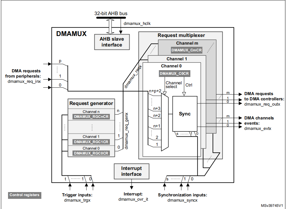 - dmamux_syncx:DMAMUX synchronization inputs (to request multiplexer sub-block)