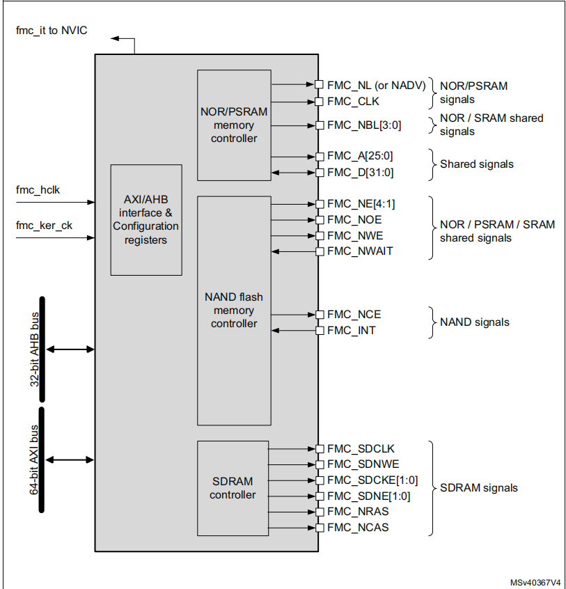 - AXI 接口:用于 CPU/DMA 访问外部存储器,时钟是 fmc_ker_ck
