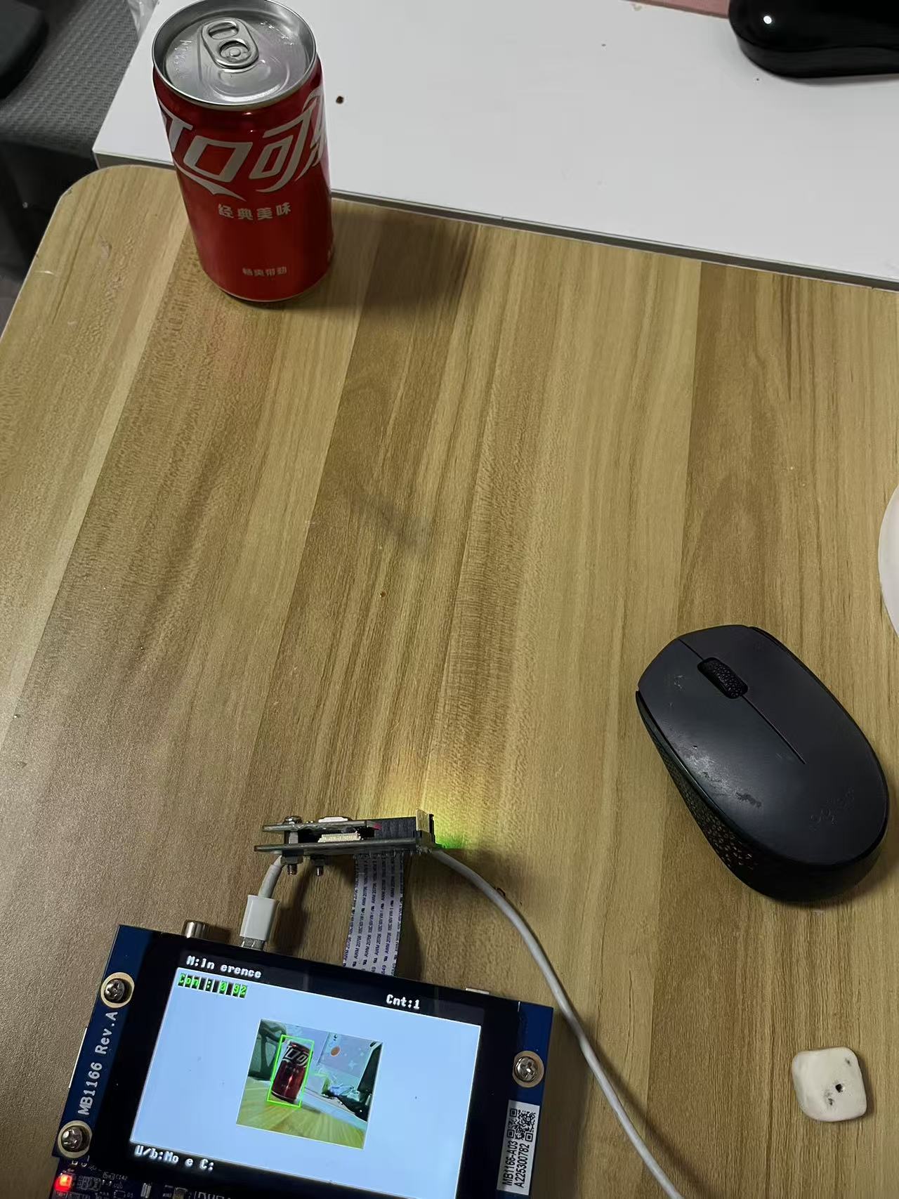 - 使用训练好的轻量级 CNN 模型进行推理,识别图片中是否存在可乐瓶,以及可乐瓶的位置